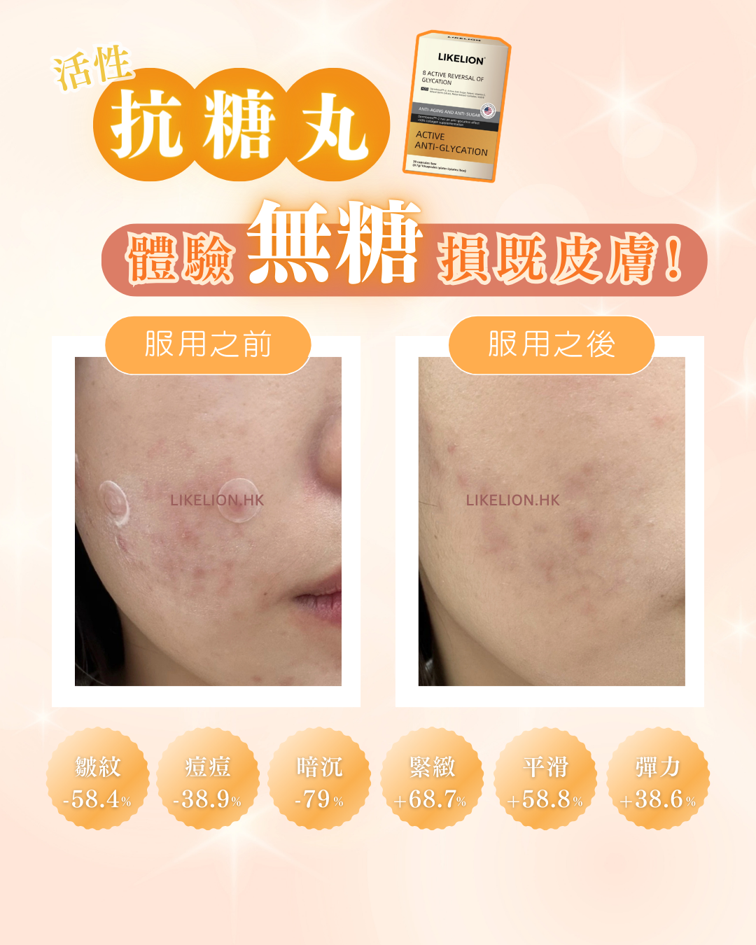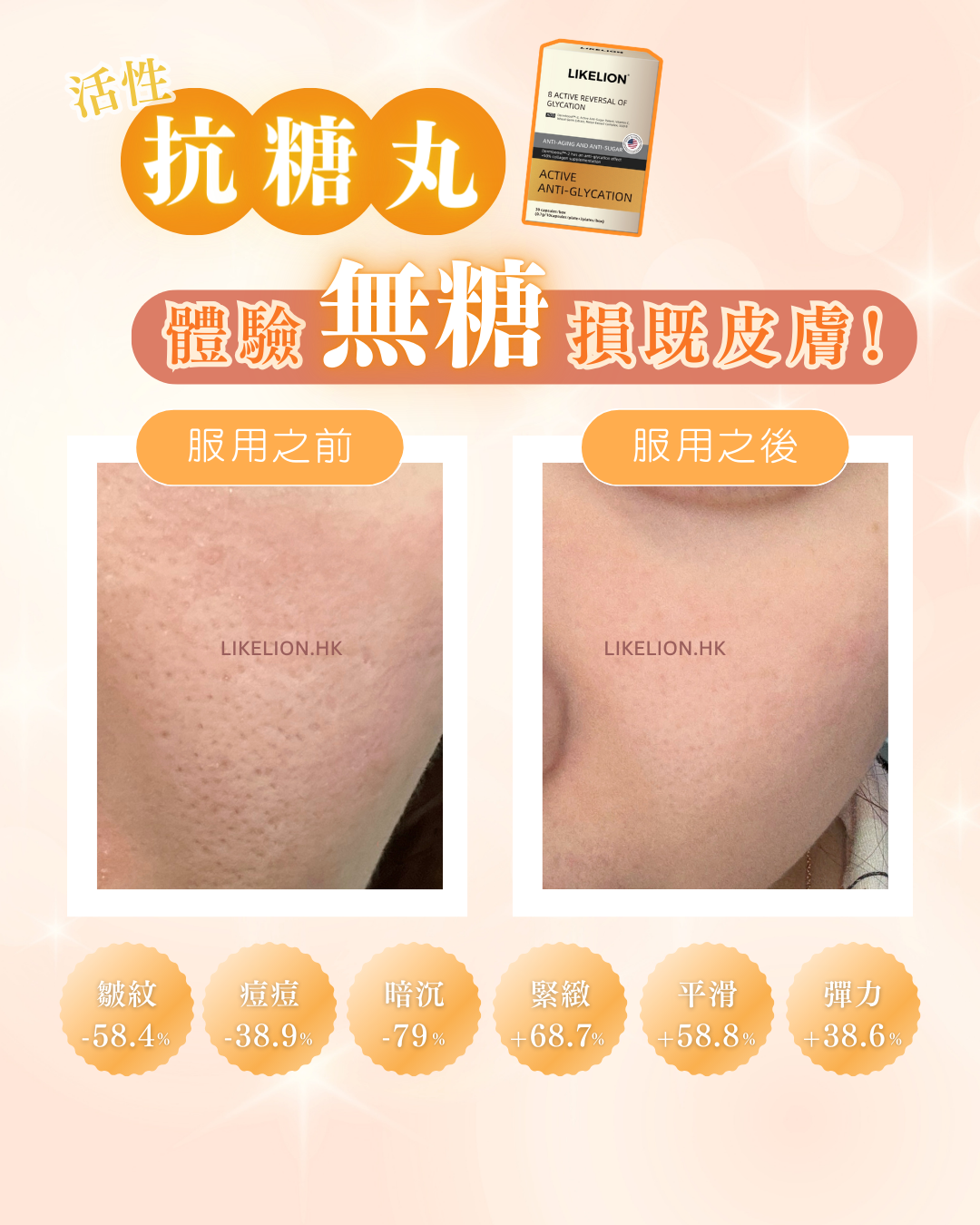 美國活性抗糖丸💊 8大維度進階抗糖抗老🥊 對抗肌膚糖化問題✨ 改善糖化引起的損傷反應🙅🏻♀️ 強效修護 有效改善膚質和彈性🧫 達致肌膚緊緻和通透效果🆙 📍📍6大維度顯著提升📍📍 皺紋 -𝟱𝟴.𝟰𝟯% 痘痘減少更控油 -𝟯𝟴.𝟵𝟯% 改善暗沉更煥亮 +𝟳𝟵% 緊緻 +𝟲𝟴.𝟳𝟯% 平滑度 +𝟱𝟴.𝟴𝟴% 彈力 +𝟯𝟴.𝟲𝟭% 🍀源頭狙糖 超高含量抗糖達88% 🍀糖氧雙抗 保護膠原蛋白達89% 🍀減少皮膚發紅抗敏感 専利成份Dermboost-2™:阻斷糖化AGES、鞏固肌膚屏障、提升肌膚自身修護力、激活膠原蛋白合成 複合型不老酵素 SOD B™ :有效減少糖氧化危機 因氧化應激的肌膚問題、減少褐素過多沉積、糖化導致的乾 / 紋 / 黄 糖鞘脂 + 磷脂:兩親性稀有脂質,可阻斷遊離糖黏附膠原蛋白 含神經醯胺:改善皺紋、減少黑色素沉澱、高效保濕、強化皮膚屏障、柔嫩彈潤、高效保濕 \同時我地可以改善糖化引起既損傷反應/以下係恐怖「糖化作用」 皮膚:皺紋﹑毛孔粗大﹑乾燥﹑膠原流失﹑鬆弛﹑暗沉無光澤﹑炎症誘發(濕疹 狼瘡 痘痘 出油)﹑雙頰下垂、眼紋和法令紋變得明顯﹑蠟黃﹑肌膚屏障受損﹑色斑等 身體 :肌肉減少﹑老化﹑增加動脈硬化的風險﹑糖尿病﹑肥胖﹑不孕﹑易累﹑減少骨骼強度﹑腎臟功能損傷等 服用方法: 35歲以下:每日1粒,隨餐或餐後溫水送服 35歲以上:每日2粒,隨餐或餐後溫水送服 周期建議:90粒(約3個月)為一個週期,效果更佳 1盒份量為:30粒 1盒 $399 3盒 $880 6盒 $1520 14盒 $2860 \抗糖抗氧美白快速SET/ 3盒抗糖丸+3盒美白飲 $1980 6盒抗糖丸+6盒美白飲 $3580