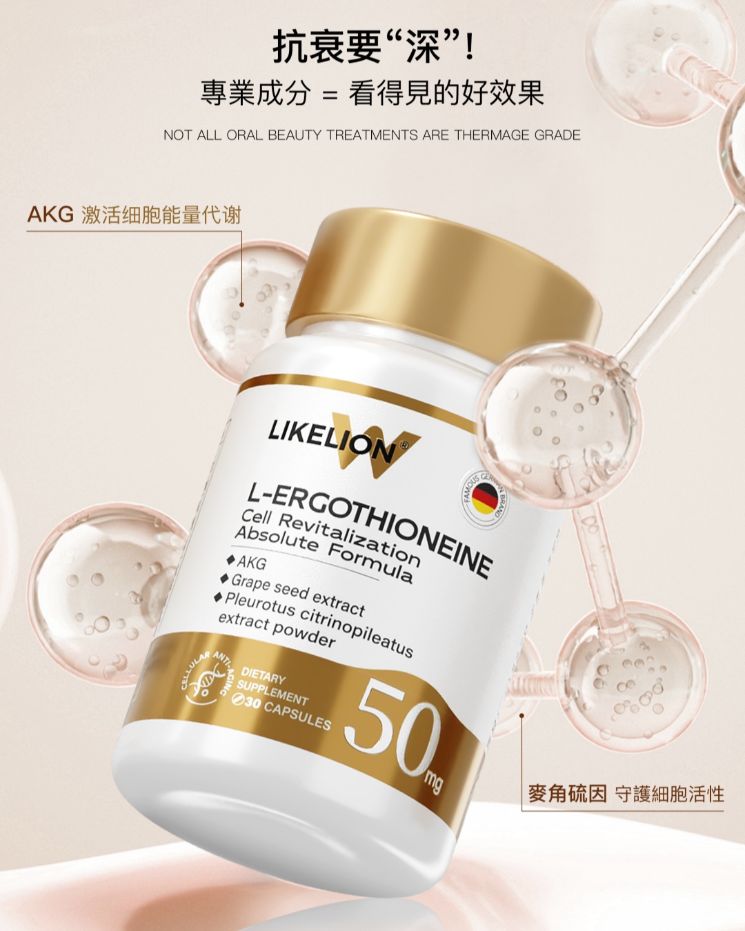 ✔️ 麥角硫因 – 清除82%線粒體自由基,抗氧抗UV